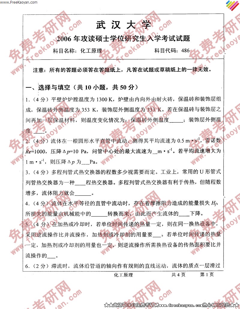 专业课考研经验 本站小编 FreeKaoyan 2018-01-22武汉大学2006年考研真题-典籍与文化综合知识