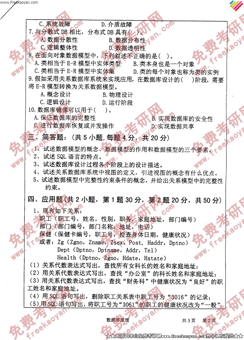 相关话题/考研真题 数据库 武汉大学 原理