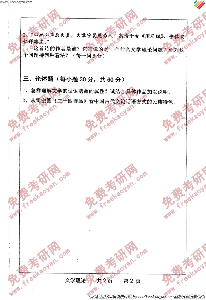 武汉大学2006年考研真题-文学理论(含文学概论、中国文论、西方文论)(2)