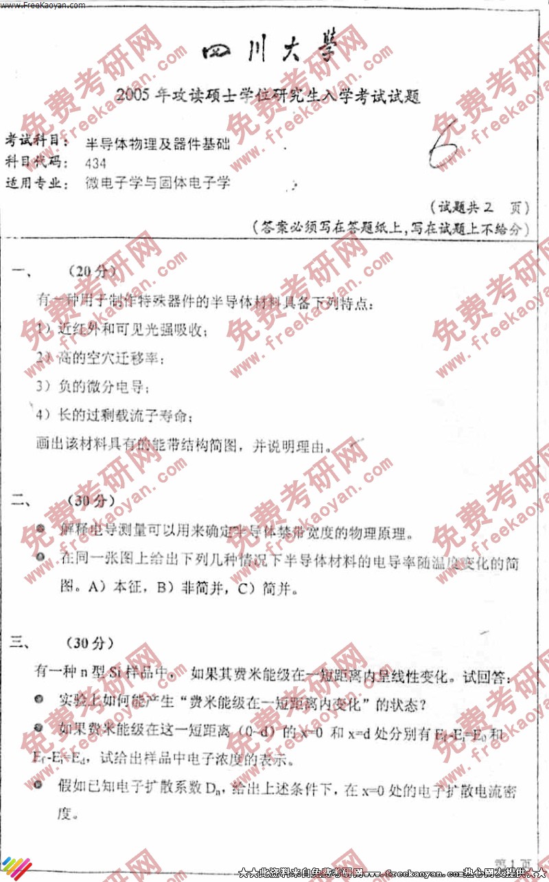 相关话题/考研真题 四川大学 半导体物理 基础 器件