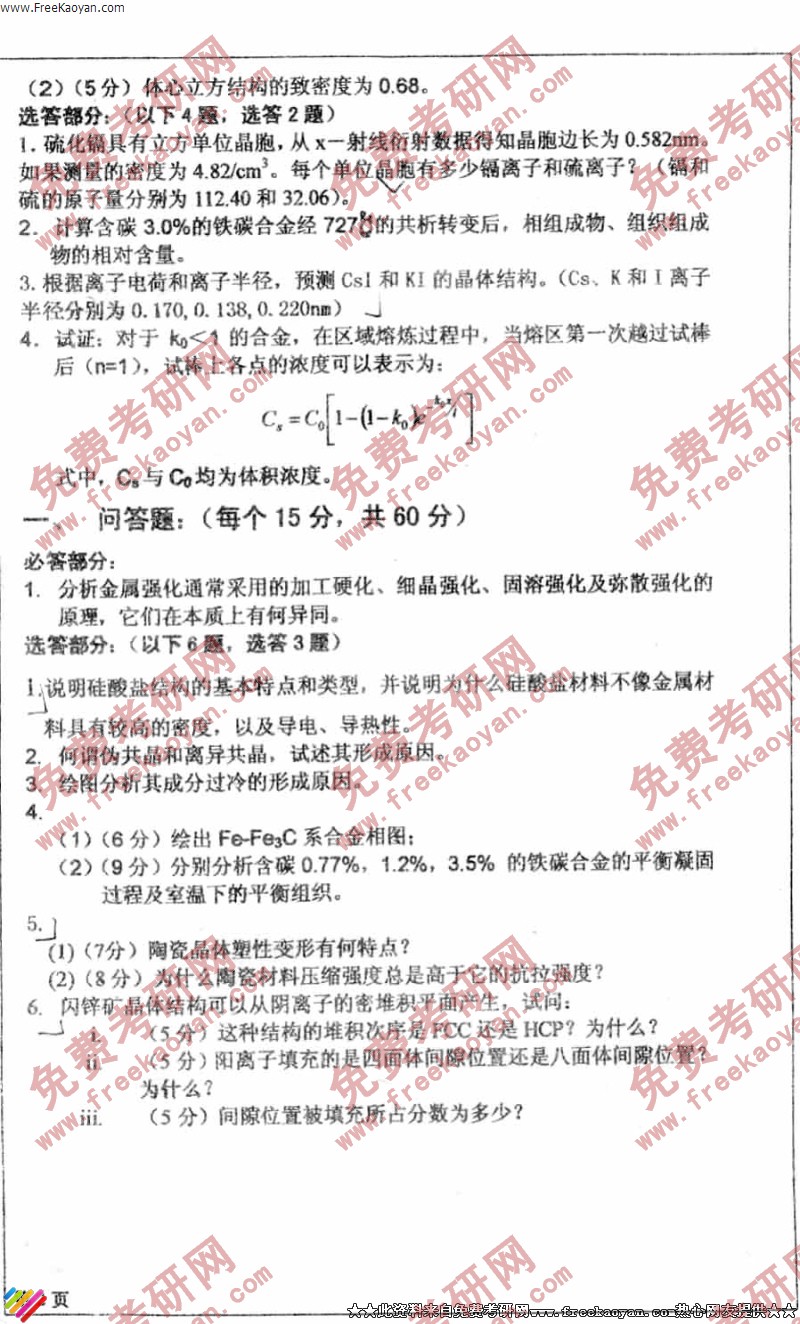 相关话题/四川大学 考研真题 材料科学基础