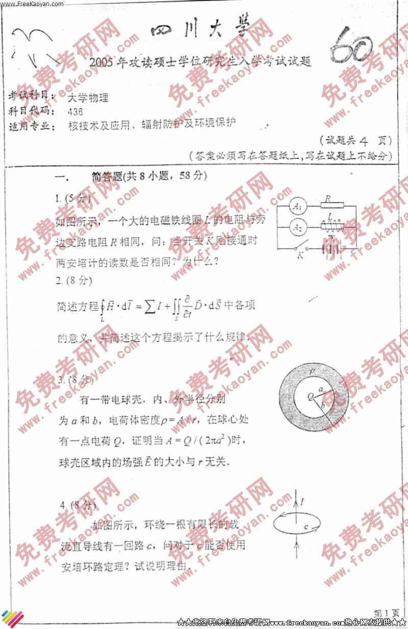 相关话题/四川大学 考研真题 大学物理