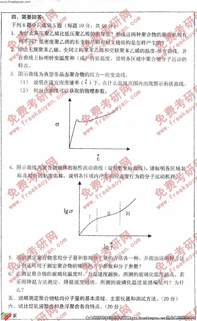 四川大学2005年考研真题-高分子化学及物理学(2)