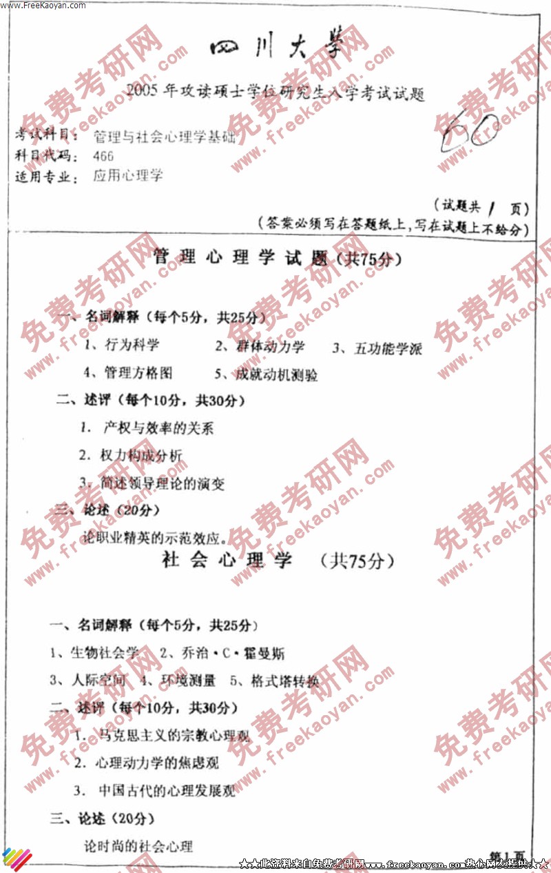 相关话题/考研真题 四川大学 管理 基础 社会心理学