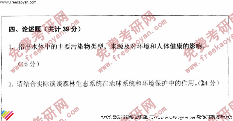 专业课考研经验 本站小编 FreeKaoyan 2018-01-22四川大学2005年考研真题-环境工程