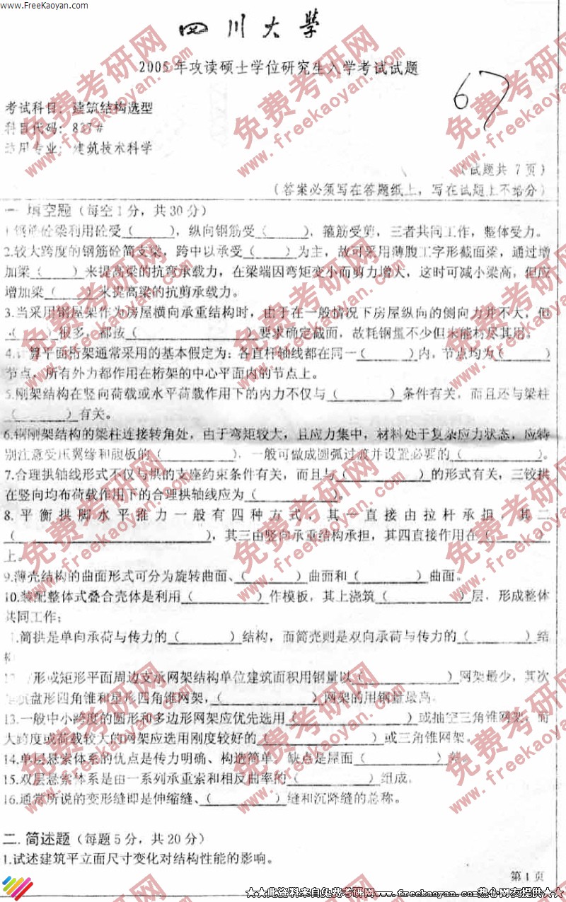 专业课考研经验 本站小编 FreeKaoyan 2018-01-22四川大学2005年考研真题-工程材料学