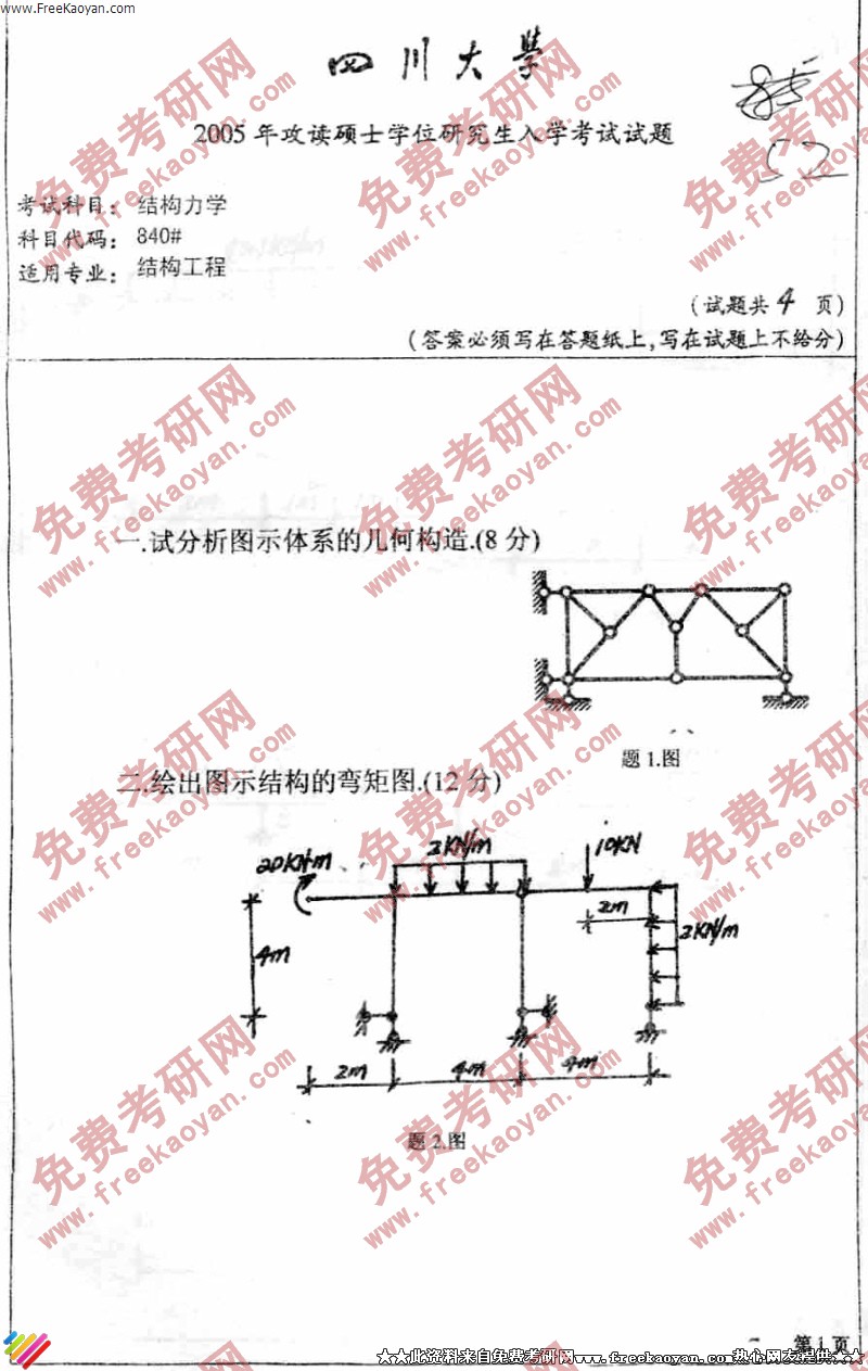 相关话题/四川大学 考研真题 结构力学