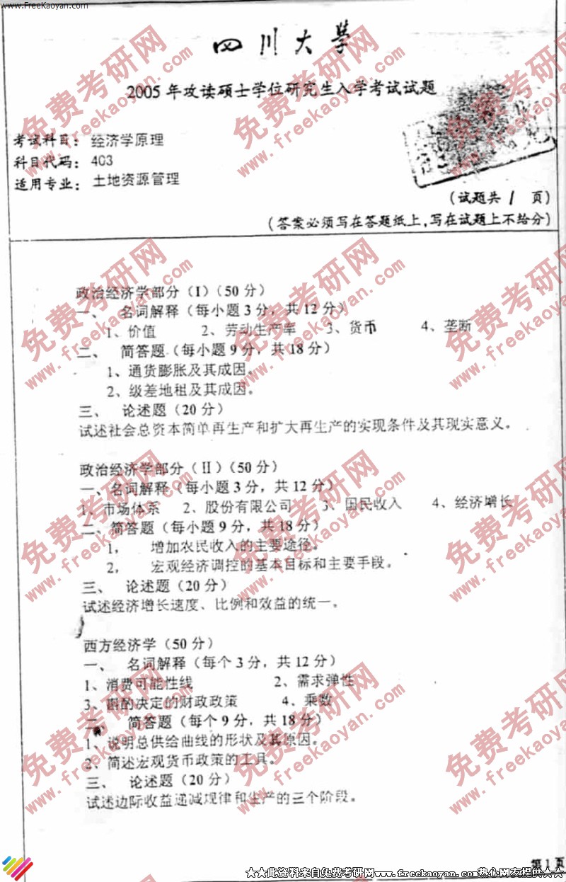 相关话题/考研真题 四川大学 土地资源管理 经济学原理