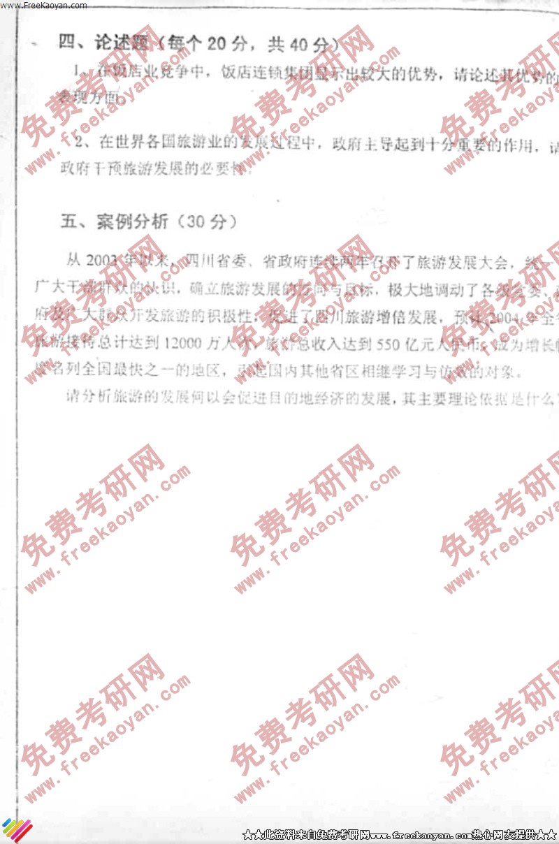 相关话题/考研真题 旅游学 四川大学 概论