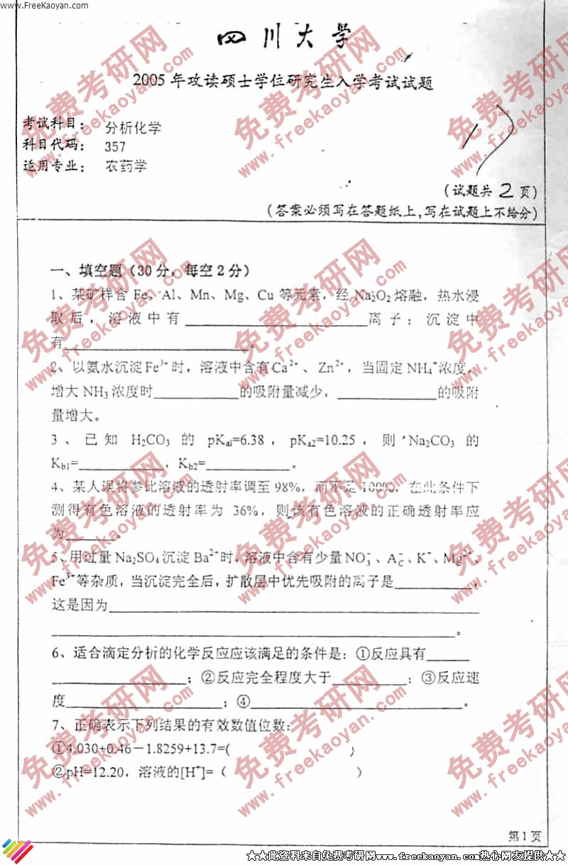 专业课考研经验 本站小编 FreeKaoyan 2018-01-22四川大学2005年考研真题-建筑设计