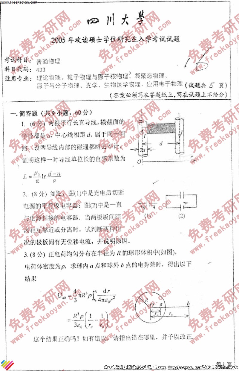 专业课考研经验 本站小编 FreeKaoyan 2018-01-22四川大学2005年考研真题-建筑设计