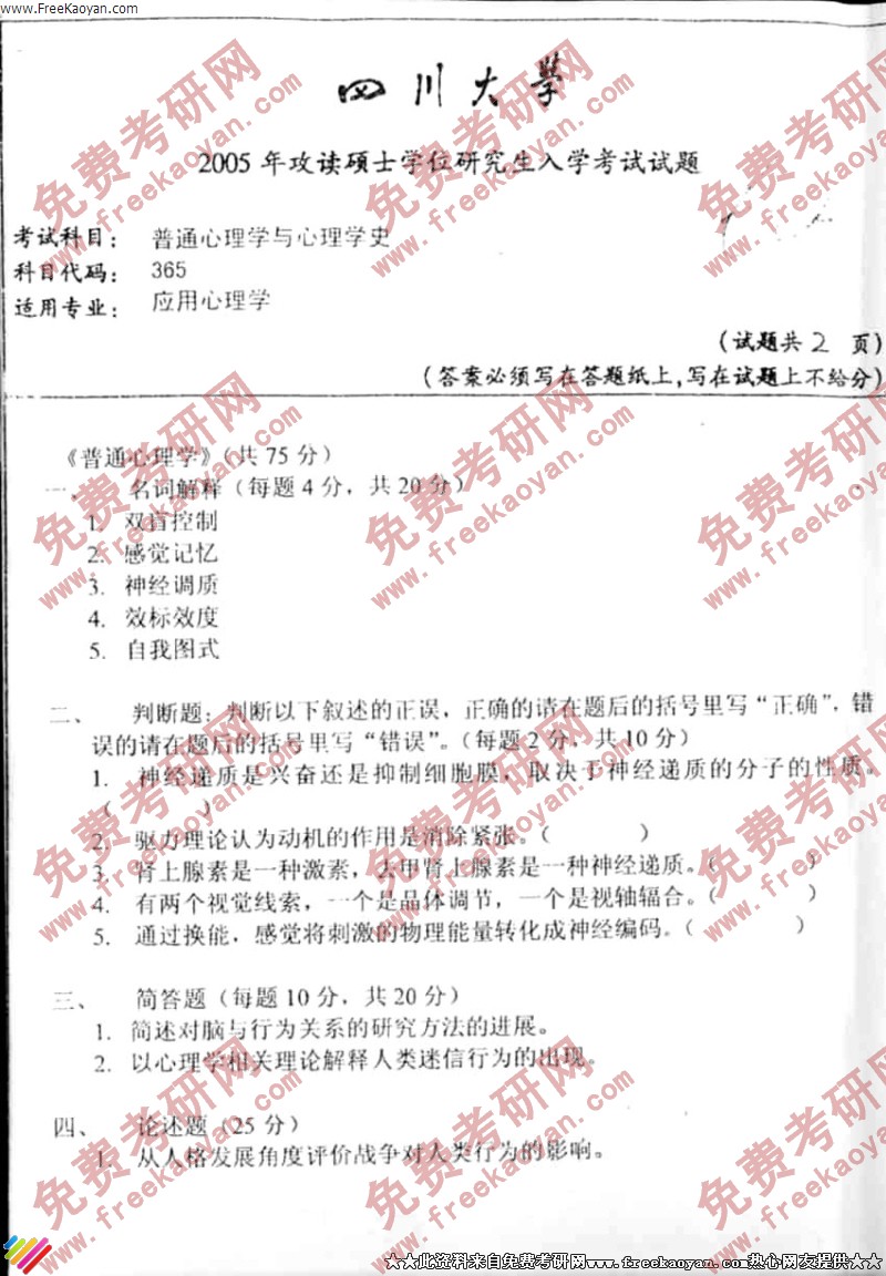 专业课考研经验 本站小编 FreeKaoyan 2018-01-22四川大学2005年考研真题-精神分析概论