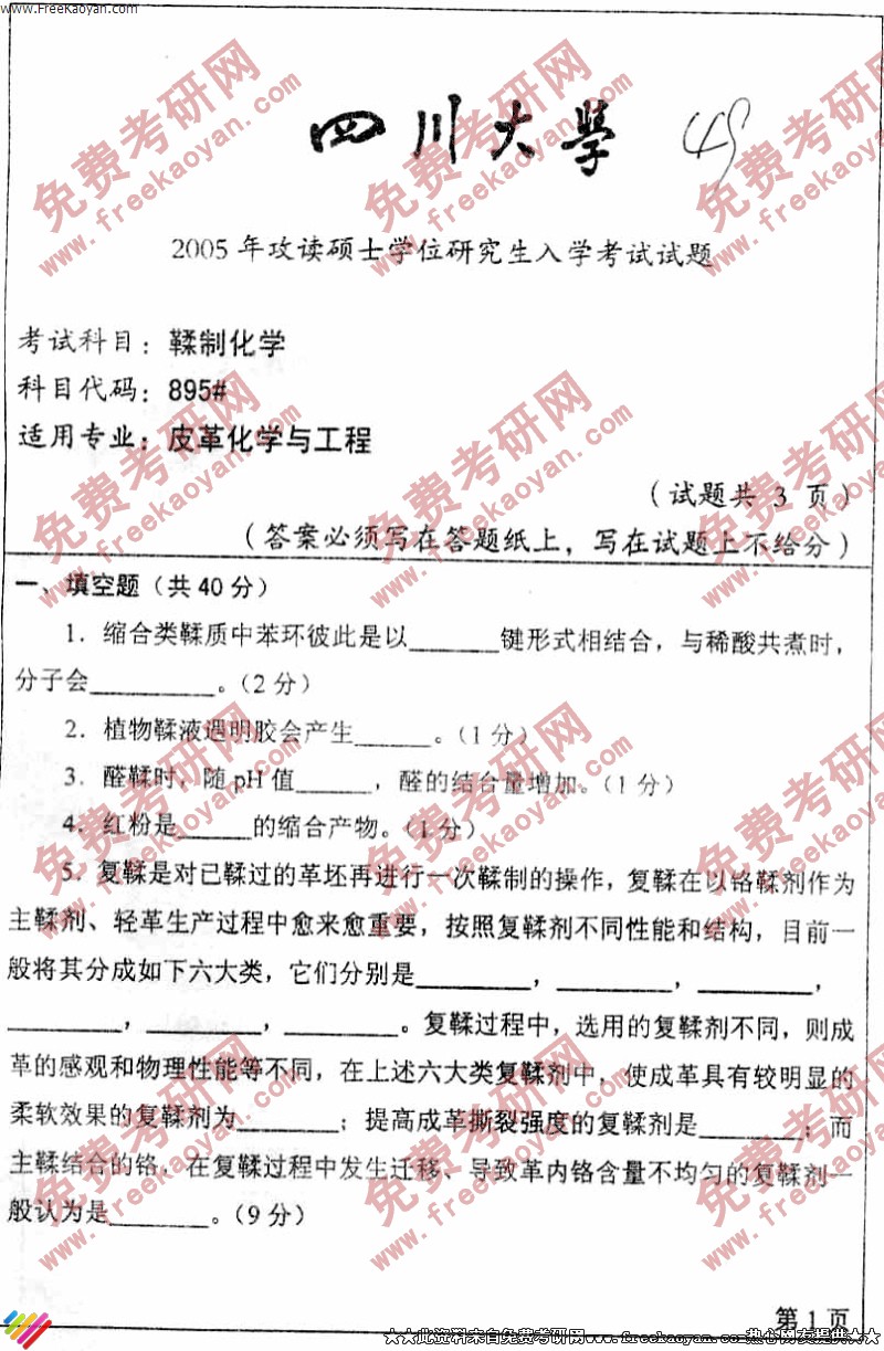 专业课考研经验 本站小编 FreeKaoyan 2018-01-22四川大学2005年考研真题-染整工程
