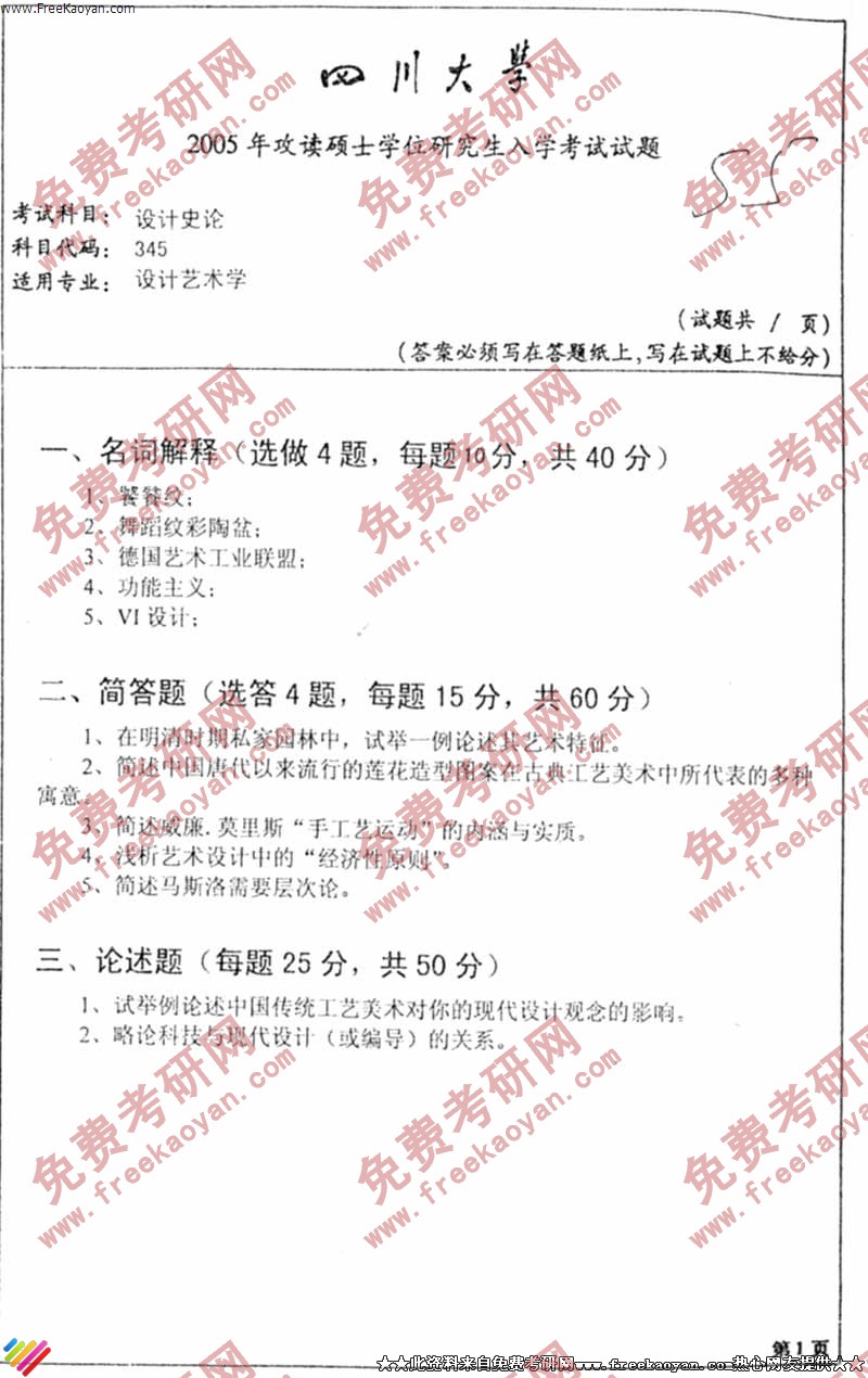 专业课考研经验 本站小编 FreeKaoyan 2018-01-22四川大学2005年考研真题-美术理论