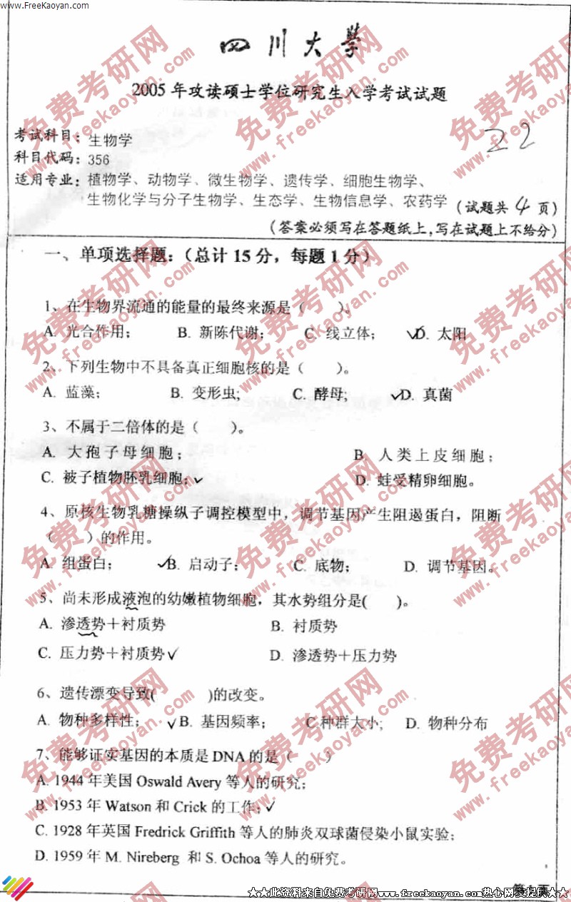 相关话题/四川大学 考研真题 生物学