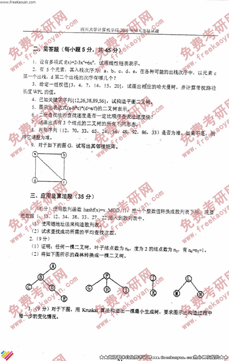 四川大学2005年考研真题-数据结构复试题及导师名单(有答案,综合卷)(2)