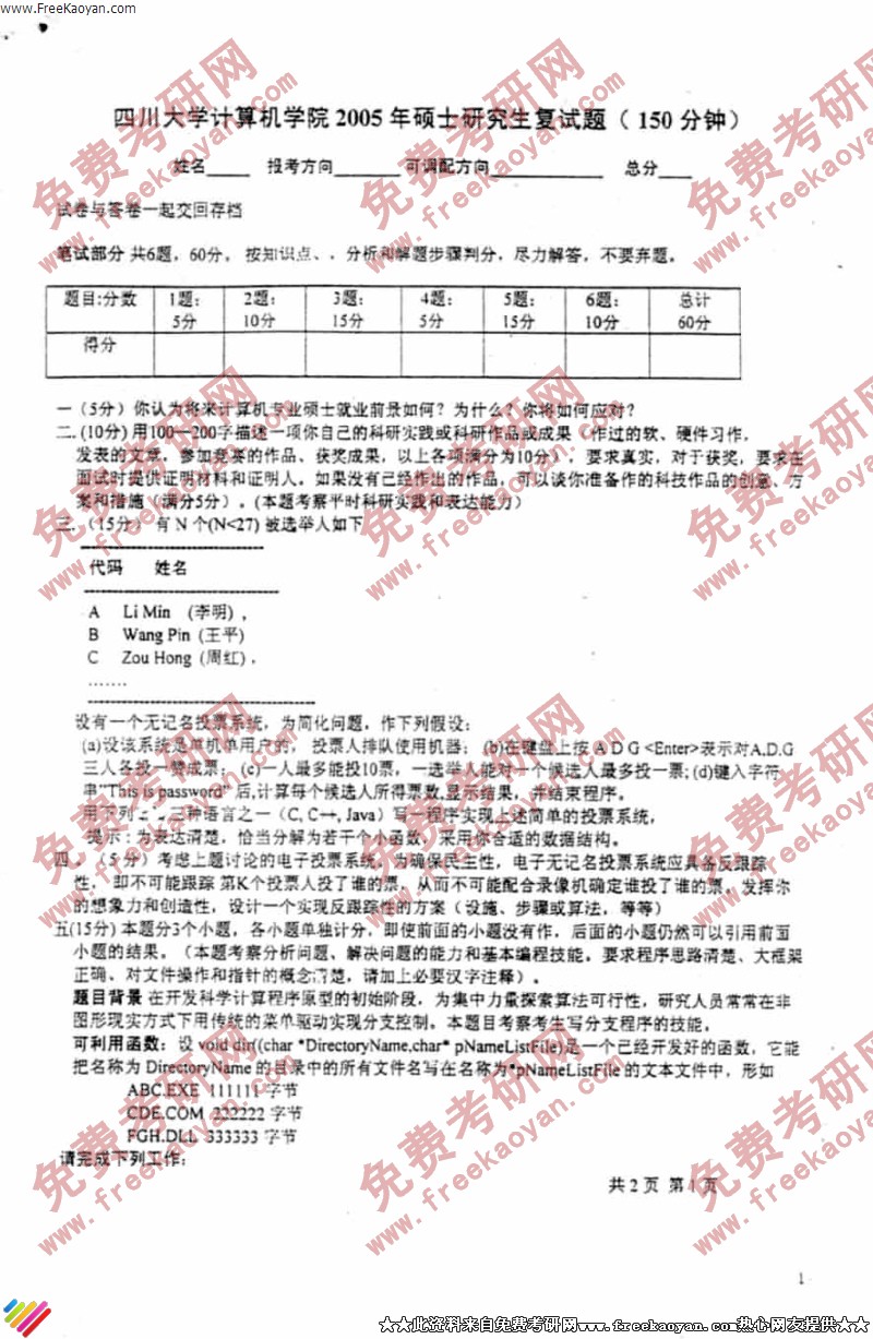 相关话题/数据结构 考研真题 四川大学 复试 综合