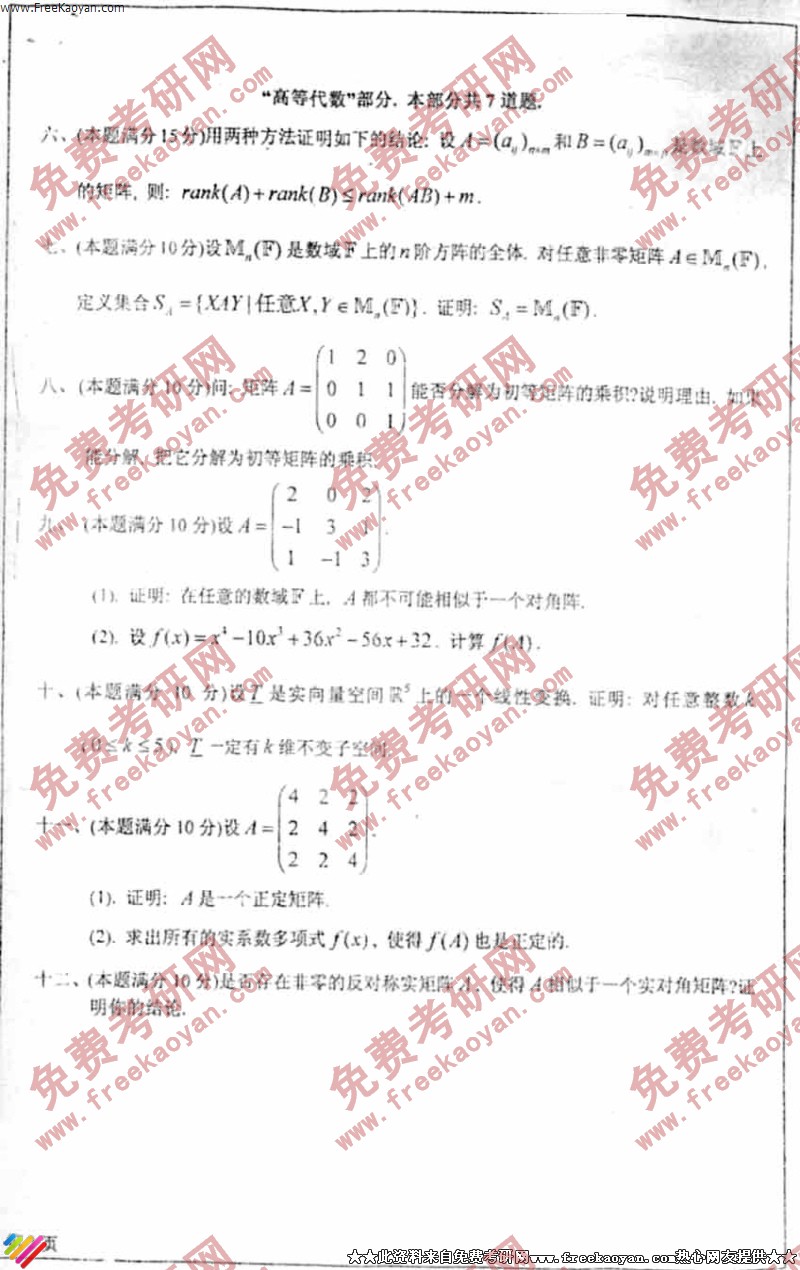 相关话题/考研真题 四川大学 高等代数 数学分析