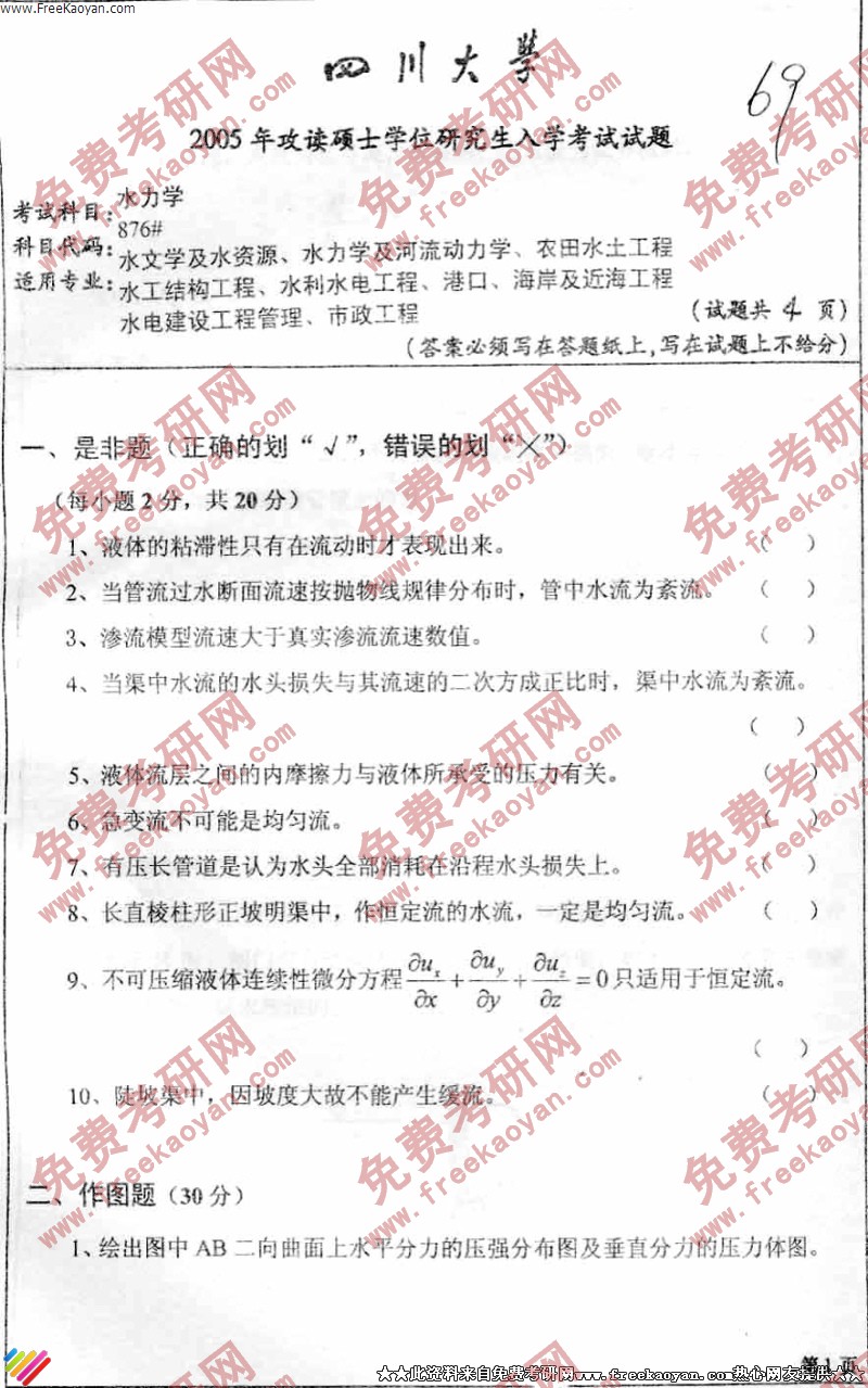 专业课考研经验 本站小编 FreeKaoyan 2018-01-22四川大学2005年考研真题-数学(有答案)