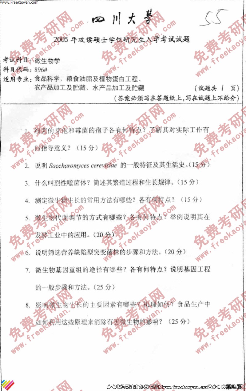 专业课考研经验 本站小编 FreeKaoyan 2018-01-22四川大学2005年考研真题-生物学