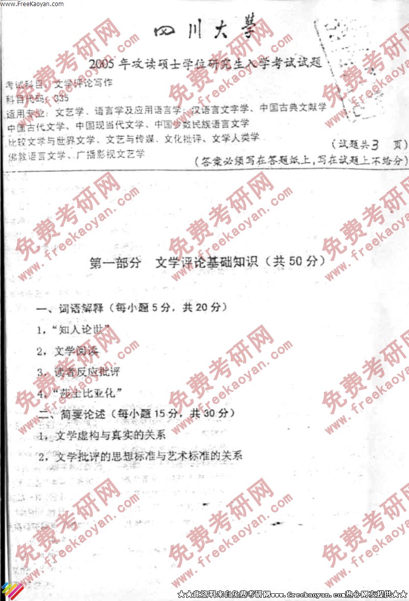 专业课考研经验 本站小编 FreeKaoyan 2018-01-22四川大学2005年考研真题-设计史论