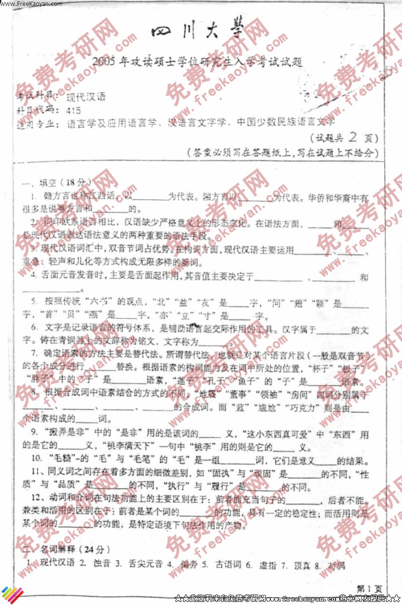 专业课考研经验 本站小编 FreeKaoyan 2018-01-22四川大学2005年考研真题-数学(有答案)