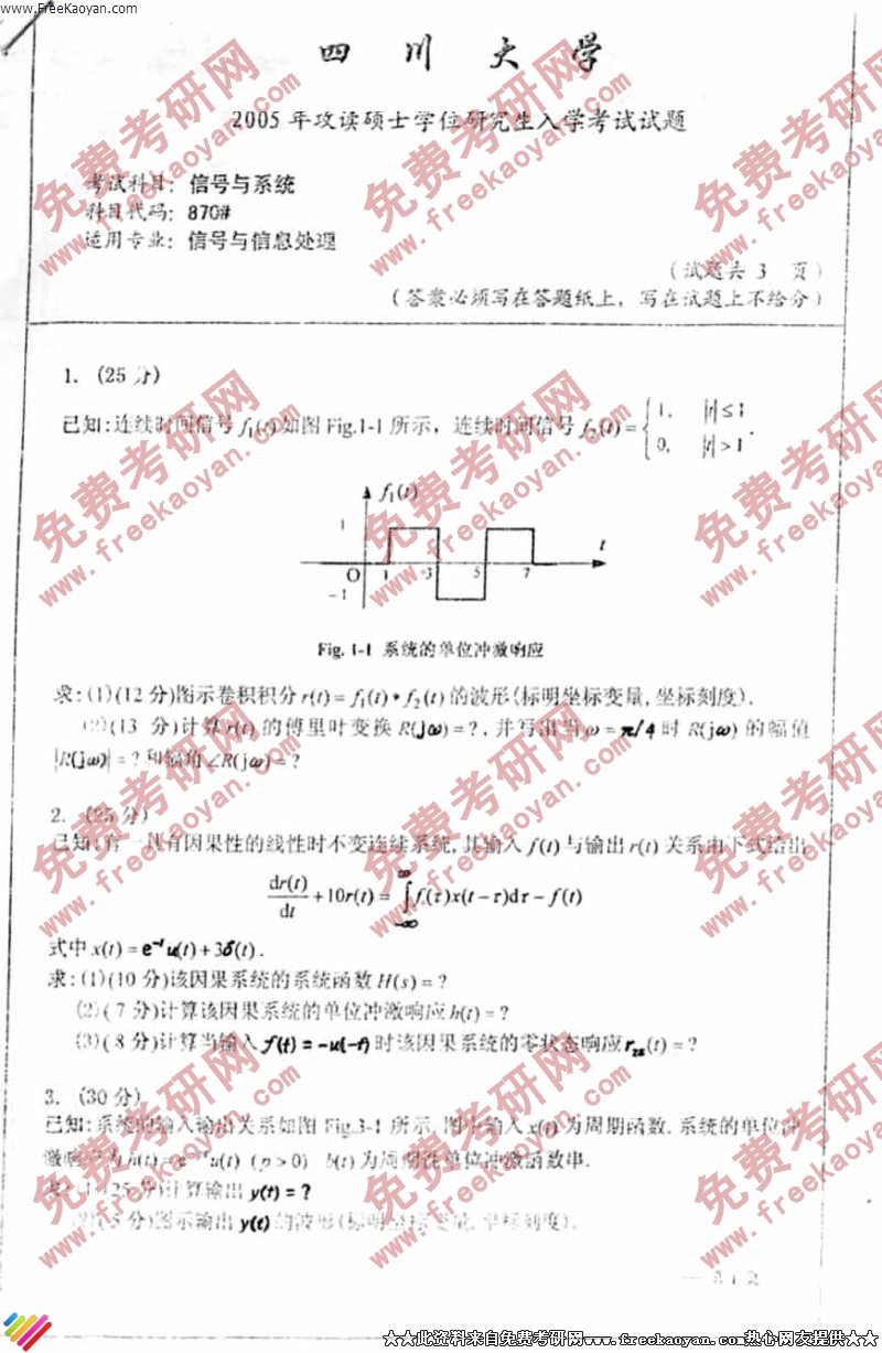 专业课考研经验 本站小编 FreeKaoyan 2018-01-22四川大学2005年考研真题-数学(有答案)