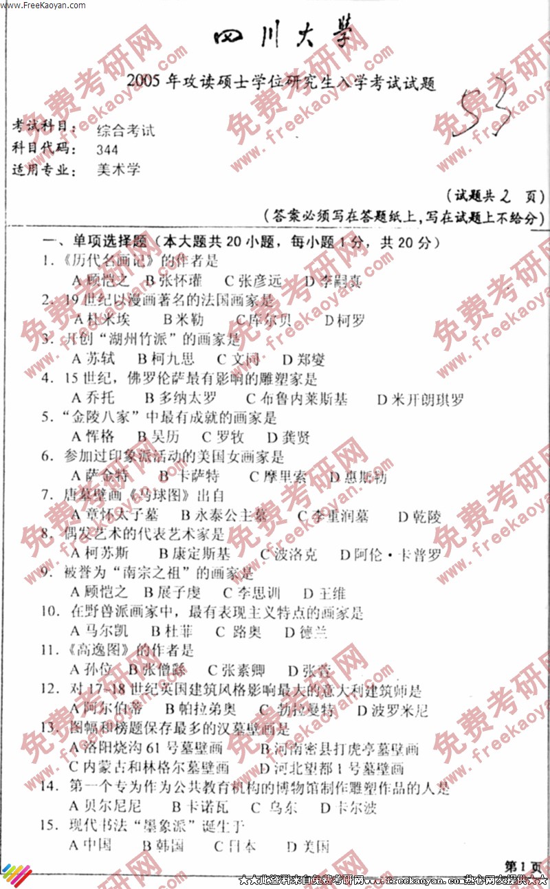 相关话题/考研真题 四川大学 综合考试 艺术学院