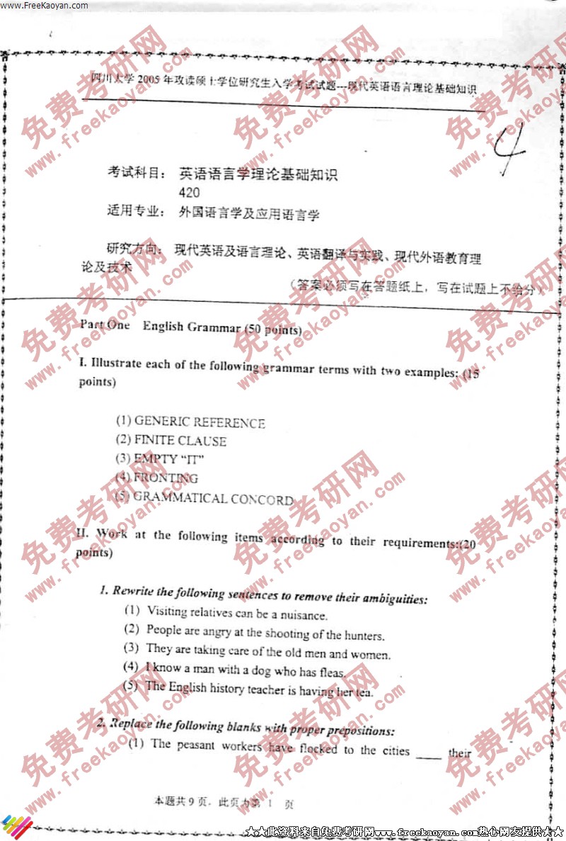 专业课考研经验 本站小编 FreeKaoyan 2018-01-22四川大学2005年考研真题-现代汉语