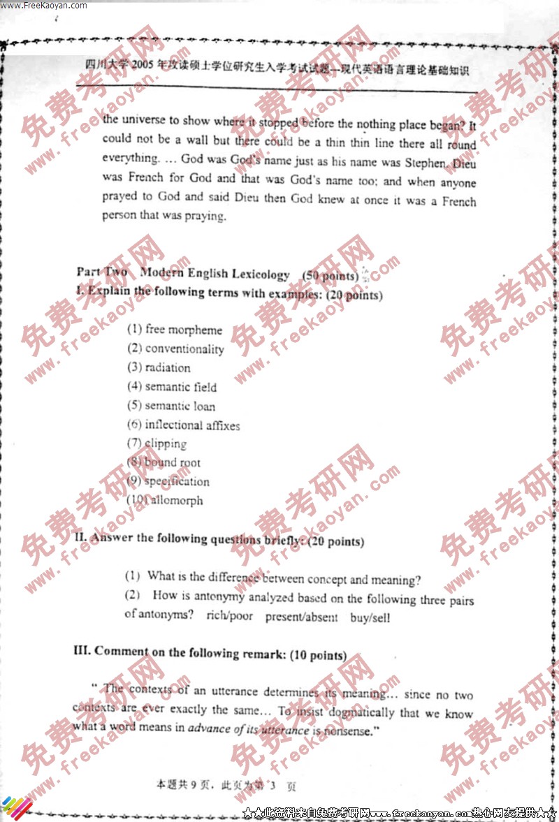 四川大学2005年考研真题-英语语言学理论基础知识(3)
