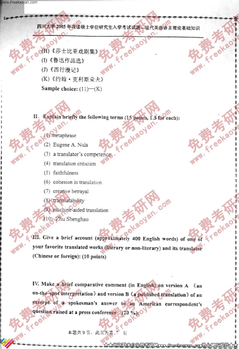 专业课考研经验 本站小编 FreeKaoyan 2018-01-22四川大学2005年考研真题-艺术学院综合考试