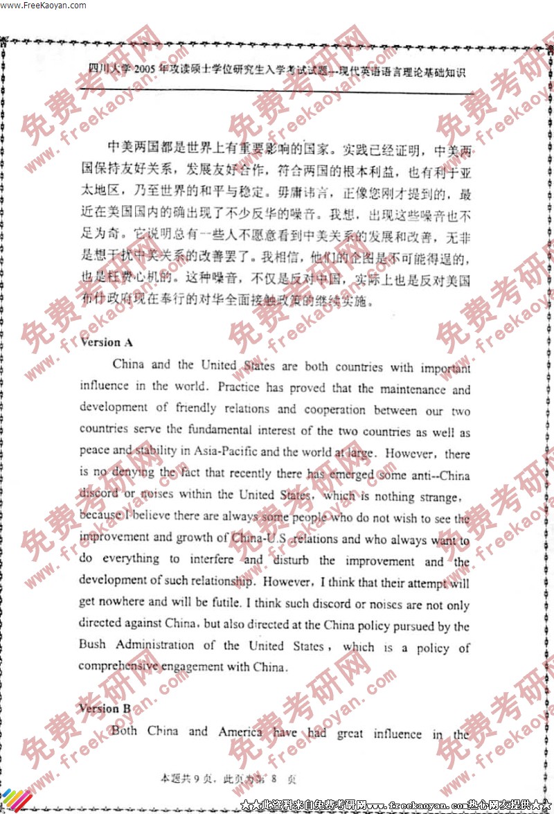 相关话题/英语语言学 考研真题 四川大学 基础知识 理论