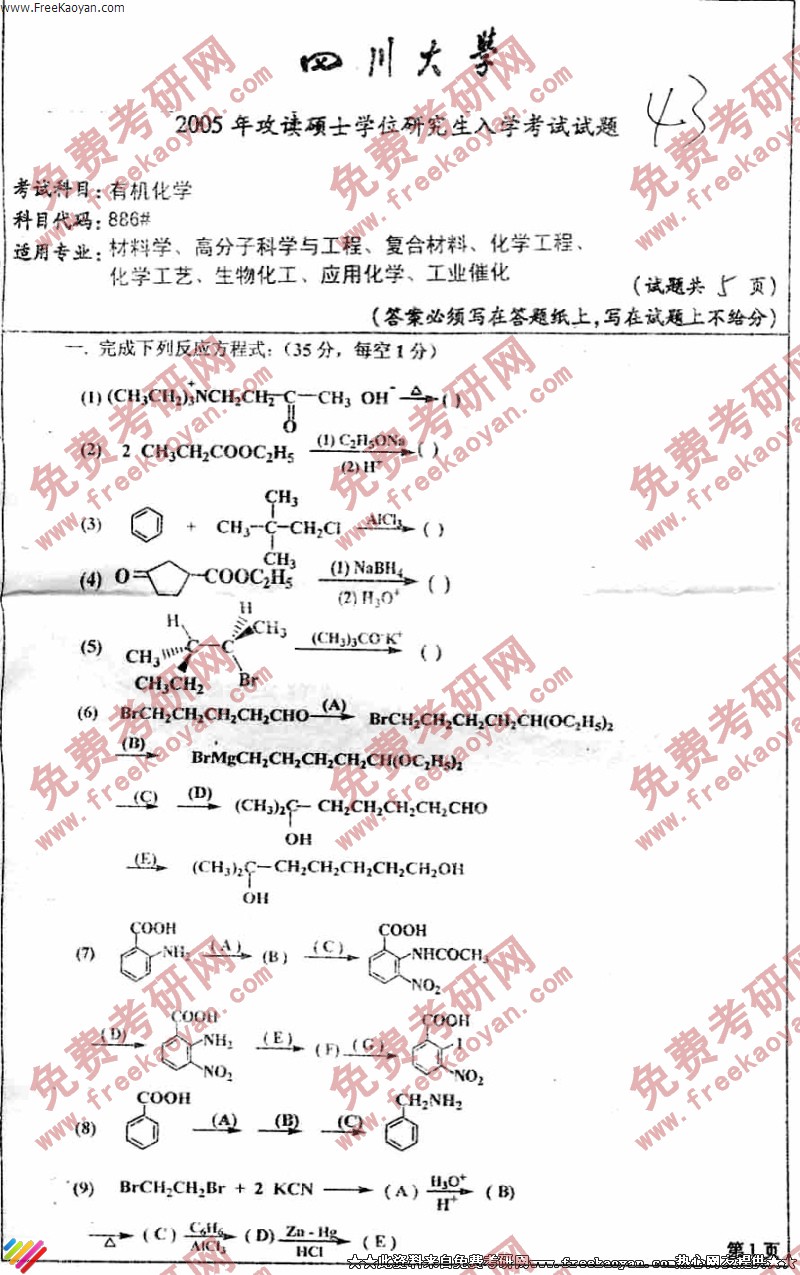 专业课考研经验 本站小编 FreeKaoyan 2018-01-22四川大学2005年考研真题-无机及分析化学