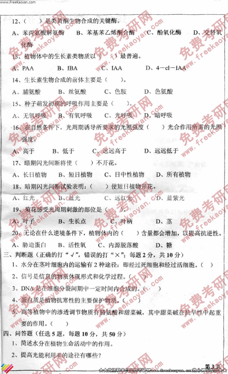 专业课考研经验 本站小编 FreeKaoyan 2018-01-22四川大学2005年考研真题-微生物学
