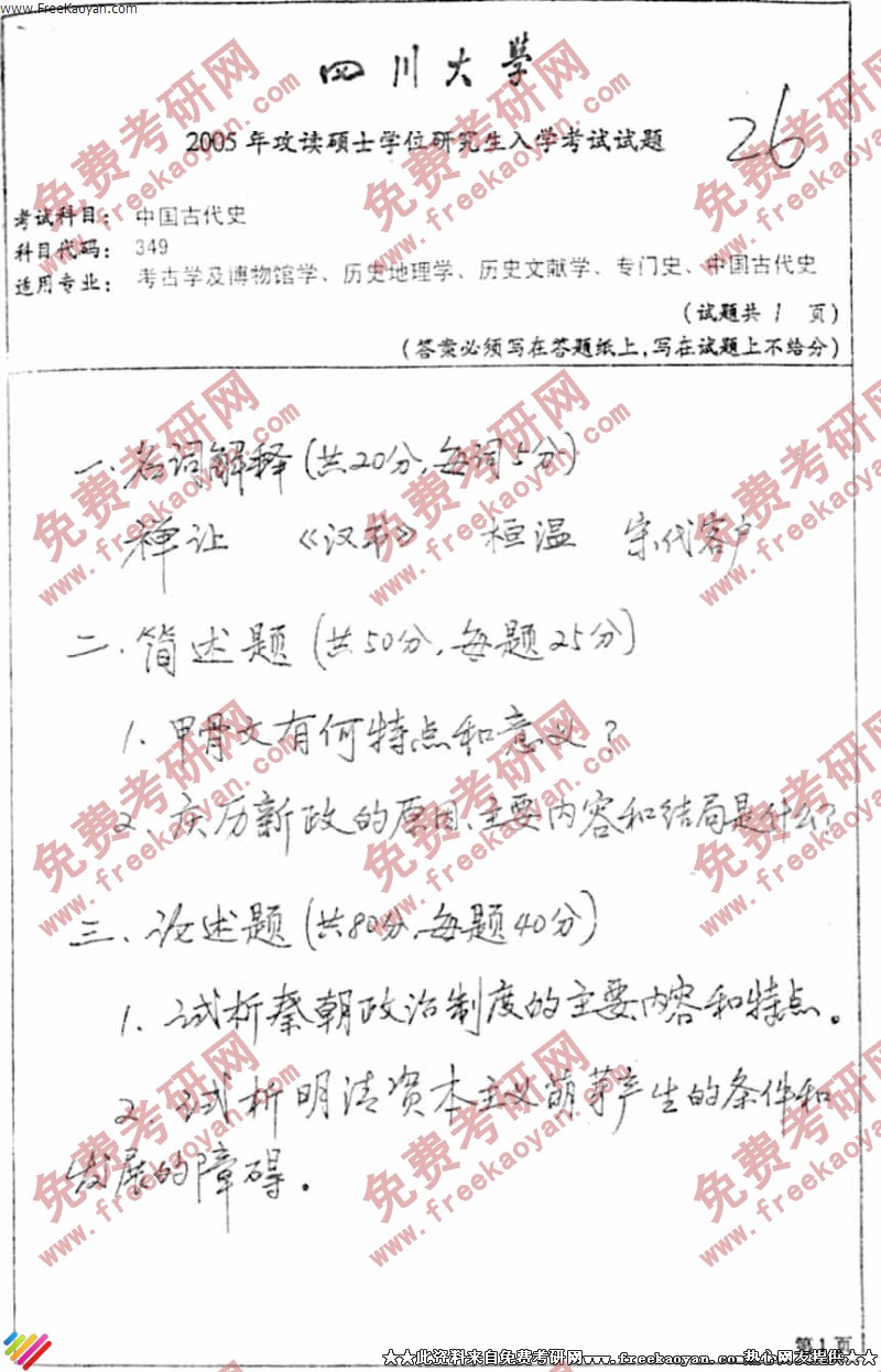专业课考研经验 本站小编 FreeKaoyan 2018-01-22四川大学2005年考研真题-艺术学院综合考试