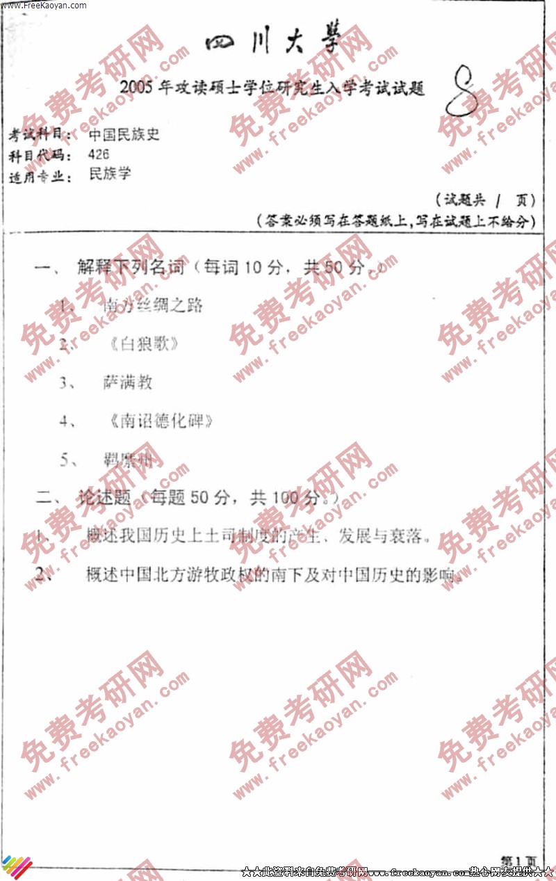 专业课考研经验 本站小编 FreeKaoyan 2018-01-22四川大学2005年考研真题-中国美术史