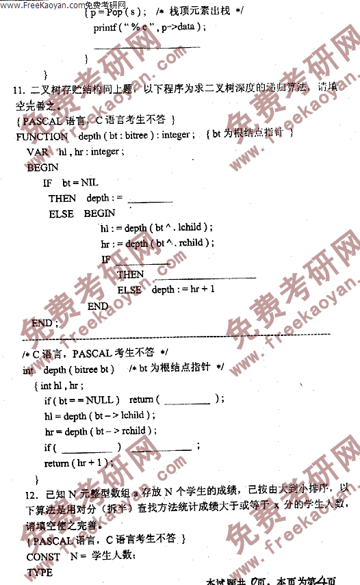 专业课考研经验 本站小编 FreeKaoyan 2018-01-22西南交通大学2000年考研真题-程序设计