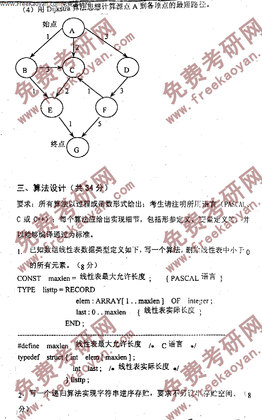专业课考研经验 本站小编 FreeKaoyan 2018-01-22西南交通大学2000年考研真题-程序设计