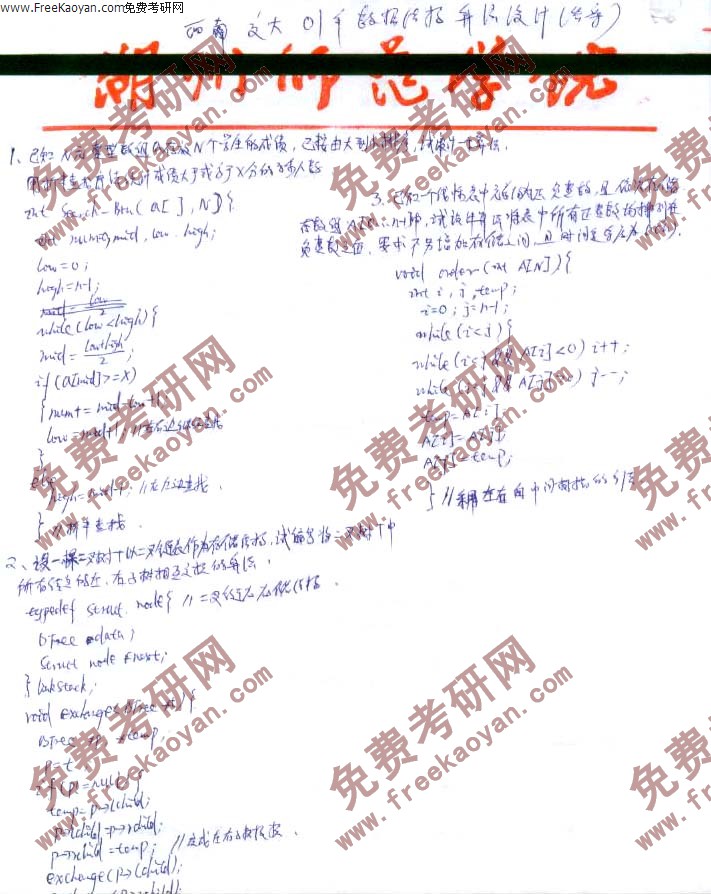 专业课考研经验 本站小编 FreeKaoyan 2018-01-22西南交通大学2000年考研真题-程序设计
