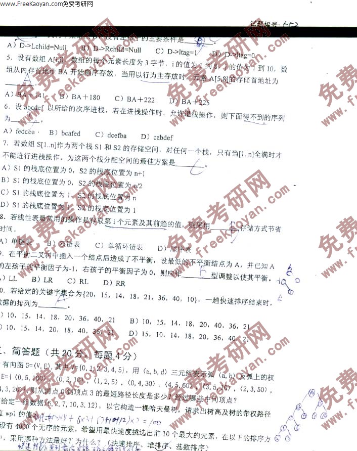 专业课考研经验 本站小编 FreeKaoyan 2018-01-22西南交通大学2000年考研真题-数据结构