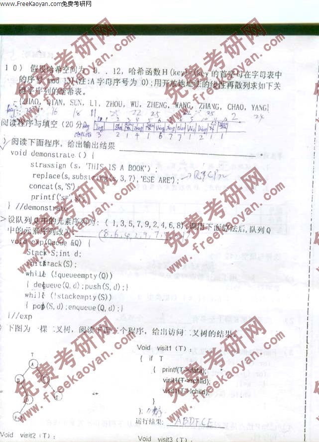 专业课考研经验 本站小编 FreeKaoyan 2018-01-22西南交通大学2000年考研真题-数据结构