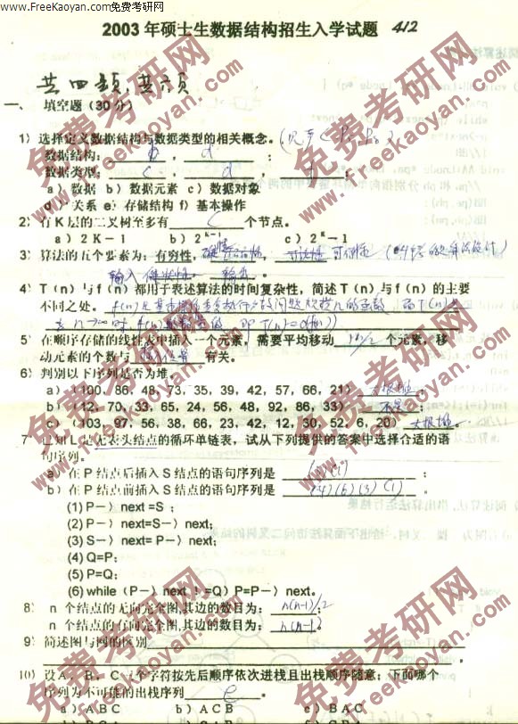 专业课考研经验 本站小编 FreeKaoyan 2018-01-22西南交通大学2002年考研真题-数据结构