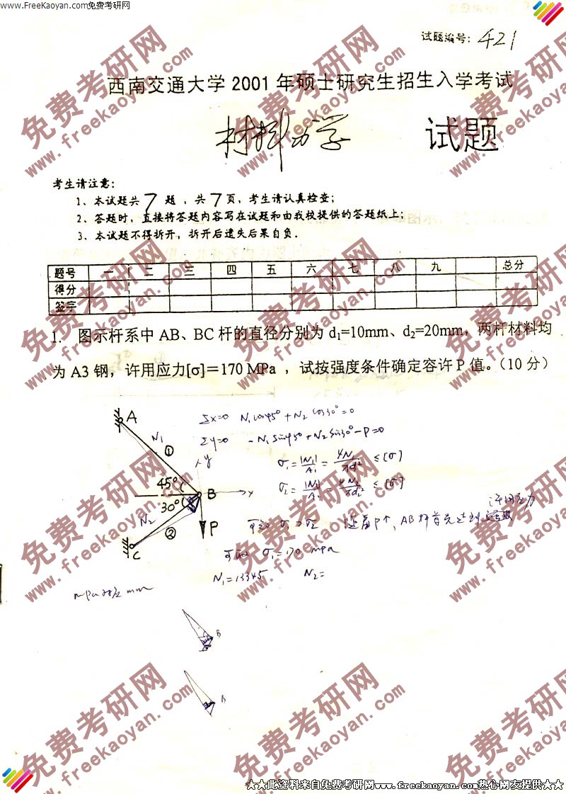 专业课考研经验 本站小编 FreeKaoyan 2018-01-22西南交通大学2001年考研真题-数据结构