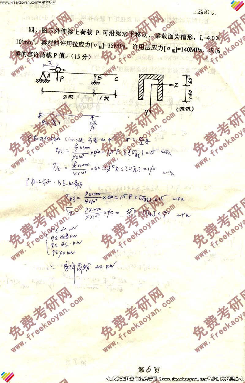 专业课考研经验 本站小编 FreeKaoyan 2018-01-22西南交通大学2001年考研真题-材料力学