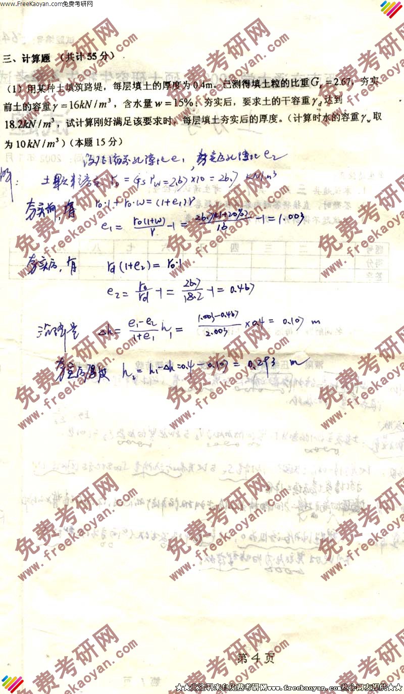 西南交通大学2002年考研真题-土力学试题(4)