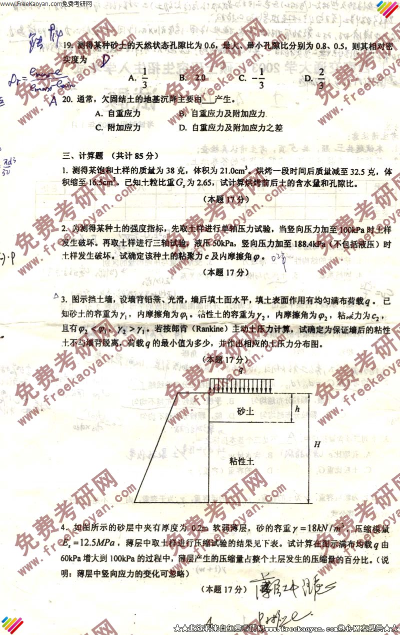 专业课考研经验 本站小编 FreeKaoyan 2018-01-22西南交通大学2002年考研真题-土力学试题
