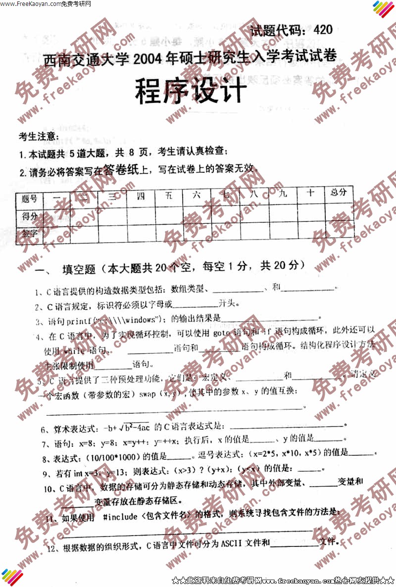 相关话题/考研真题 西南交通大学 试题 程序设计