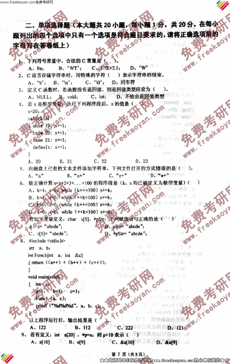 西南交通大学2004年考研真题-程序设计试题(2)