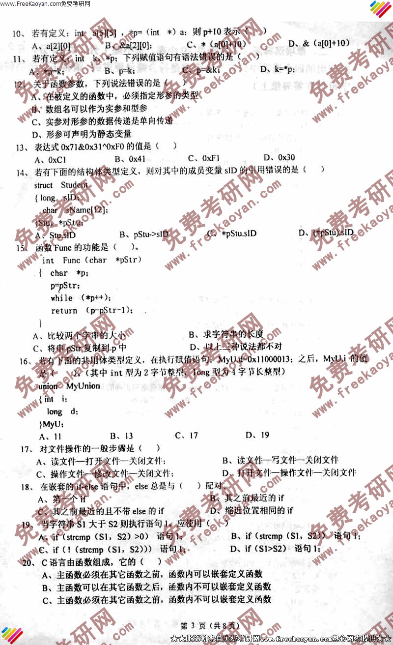 专业课考研经验 本站小编 FreeKaoyan 2018-01-22西南交通大学2003年考研真题-数据结构