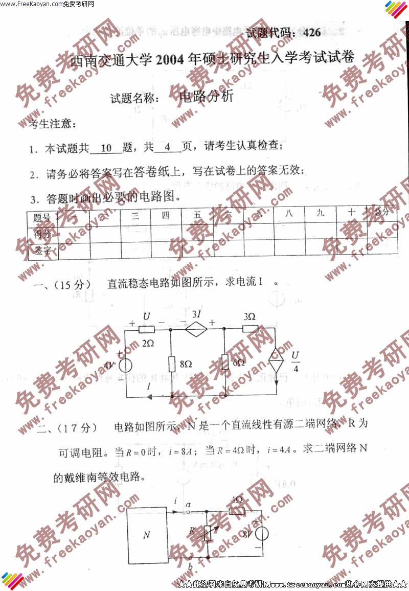 专业课考研经验 本站小编 FreeKaoyan 2018-01-22西南交通大学2004年考研真题-测量学试题
